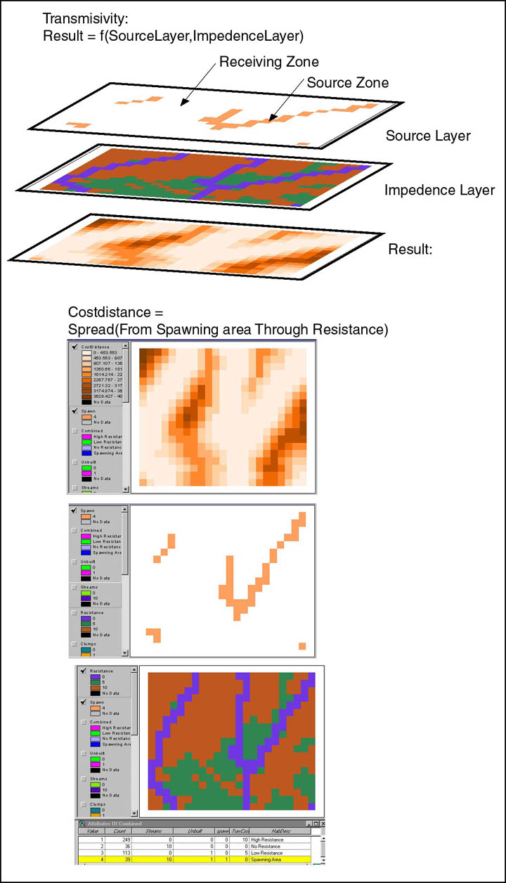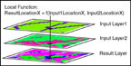 Raster Associations: The hallmark of raster GIS is the broad spectrum of ways that entities may be systematically associated. The spatial regularity among the cells is what permits these associations among cells in a single layer, or among cells in other layers. These associations are quite powerful for modeling the spatial interactions or spatial questions that occur often in real life: